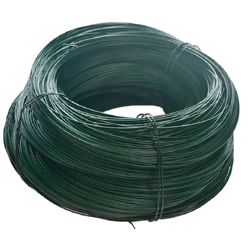 PVC coated iron wire features a metal wire wrapped with PVC material to enhance its service life and meet environmental protection requirements. The wire undergoes a high-temperature plasticizing process, ensuring the PVC coating tightly adheres to the metal surface, preventing air penetration and oxidation. It is available in various colors such as dark green, fresh green, white, black, red, yellow, transparent, and brown, with custom colors also available upon request.
